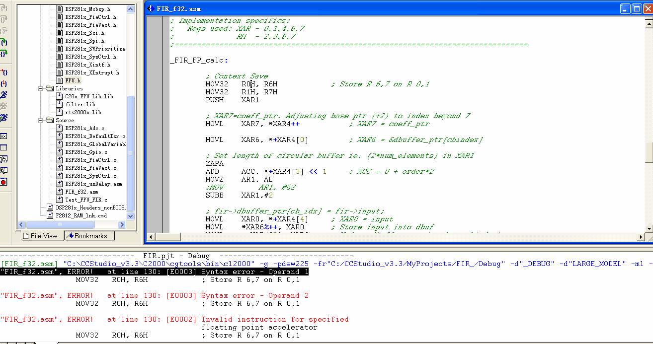 我是调用FIR库函数来做数字滤波,下载了controlSUITE安装后,定点型的库函数调用没遇到什么困难,可是在调用浮点型的库函数时遇到了附件中的问题,我添加的文件如下