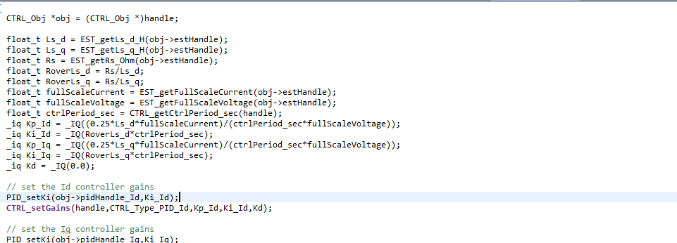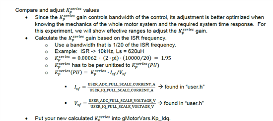 1) 在用F28069F做电机的电流环 PI 的 Ki 和 Kp 时,看到测试文档上写的 Kp 的公式和例程上的 Kp 公式不同,算到的值也不同,Ki 是一样的,不知道以哪个公式 为准?