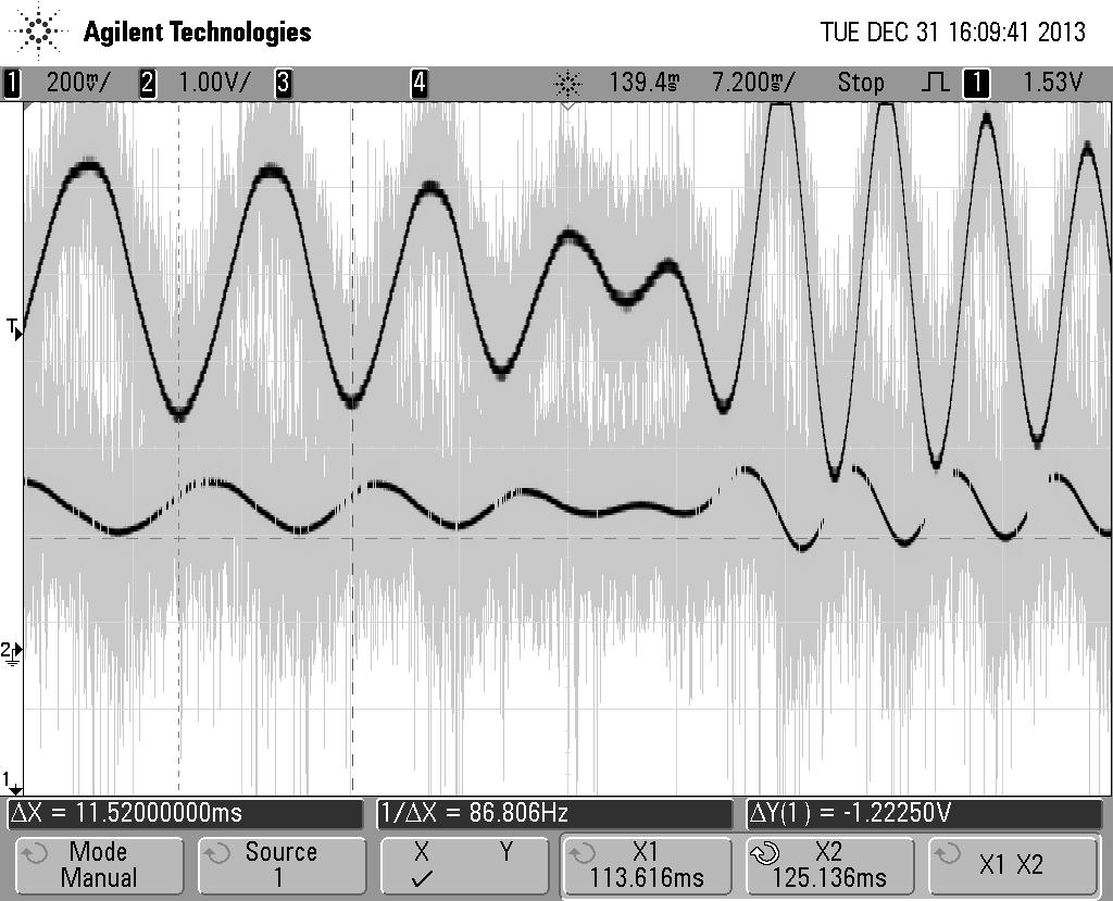 当需要进行速度控制时,出现堵转。抓到Ia,Ib波形出现波动。