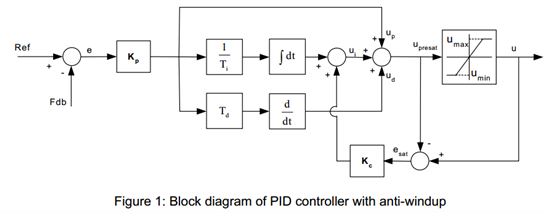 最近在做异步电机仿真,使用了TI的开发套件,并参考了TI的文档《pid_reg3.pdf》,其中介绍了一个带抗积分饱和的PID控制器,实现框图如下