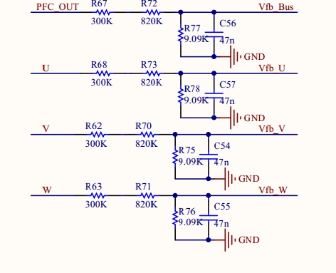 硬件电路参考的是:C:\ti\controlSUITE\development_kits\HVMotorCtrl+PfcKit_v2.1\~HVMotorCtrl+PFC-HWdevPkg\HVMotorCtrl+PFCKit-R1.1\MacrosUsed[R1.1],改动了:电机驱动芯片换了,电流采样运放改了,电压反馈没改