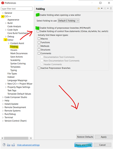 TMS320F280025: 请问CCS中可以折叠代码吗