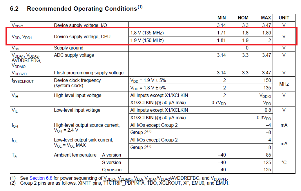 芯片型号TMS320F2812,采用外部晶振输入时钟信号,信号为幅度+3.3V方波,频率20MHz。在内核电压为+1.8V时,芯片上电不工作;如果提高内核电压+1.87V,芯片上电可正常工作。请问这种现象是不是由于晶振信号幅度太大造成?并且请问晶振幅度+3.3V对DSP芯片会不会造成损害?