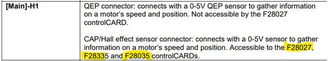 H-1、H-2、H-3(pin2、4、6)是霍尔传感器,支持F28027 CC、F28335 CC 和 F28035 CC: