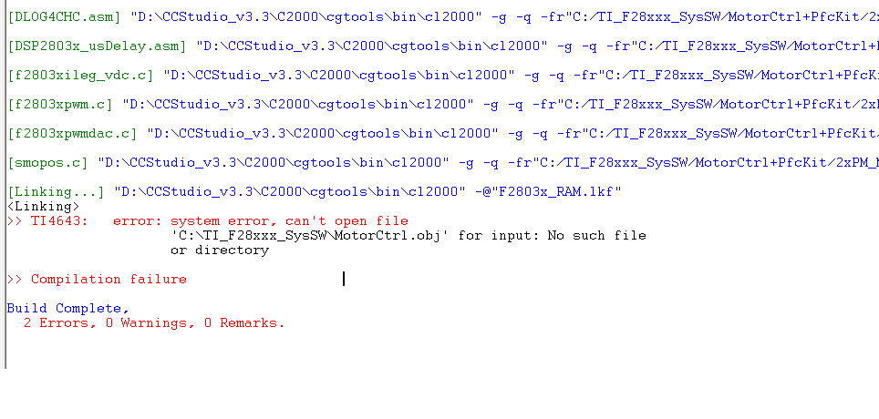 这个软件包缺少一些头文件和库文件,请在以下地址下载另一个软件包:http://www.ti.com/tool/sprc675 ,下载后将其安装到之前的“mtrpfcv1.2”文件夹下。新安装的软件包包括了之前软件包缺失的所有文件,但某些文件的路径还是错误的,需要根据错误提示再修改一下。