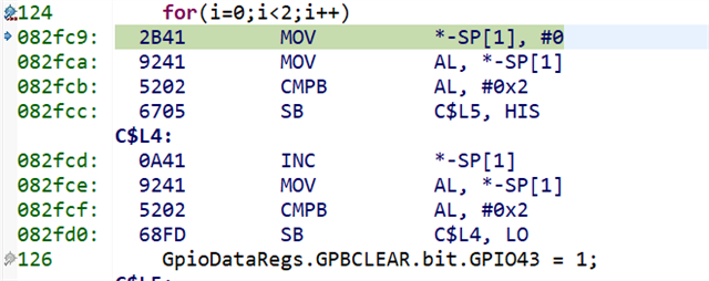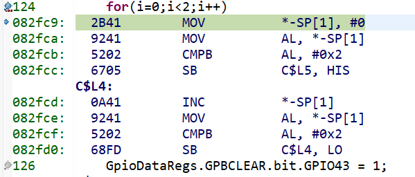 在CCS中查看过了多少个始终周期。以下FOR循环,25KHZ用了32个时钟周期,50KHZ用了128个时钟周期。