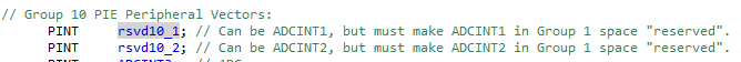 在调试C2000 Launchpad AD时,先采用的是单通道INA0转换,采用中断方式读取,中断向量为ADCINT1,但通过查中断向量表发现有两个ADCINT1,一个属于INT1,另一个属于INT10。通过调试发现,AD进入INT1中断,而不是INT10中断。所以想问一下两个ADCINT1中断有什么不同??为什么要有两个ADCINT1??INT10中的ADCINT10中断在什么情况下会进去??