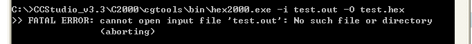 c:\>CCStudio_v3.3\c2000\cgtools\bin\hex2000 -t test -o test.hex