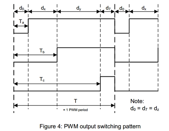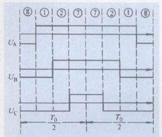 还有就是,我在其他的文档上看到开关切换顺序对应的三相波形图如下: