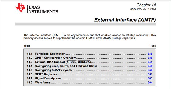 有的,C2000Ware中有相关的例程,请参考C:\ti\c2000\C2000Ware_4_03_00_00\device_support\f2833x\examples\xintf_run_from