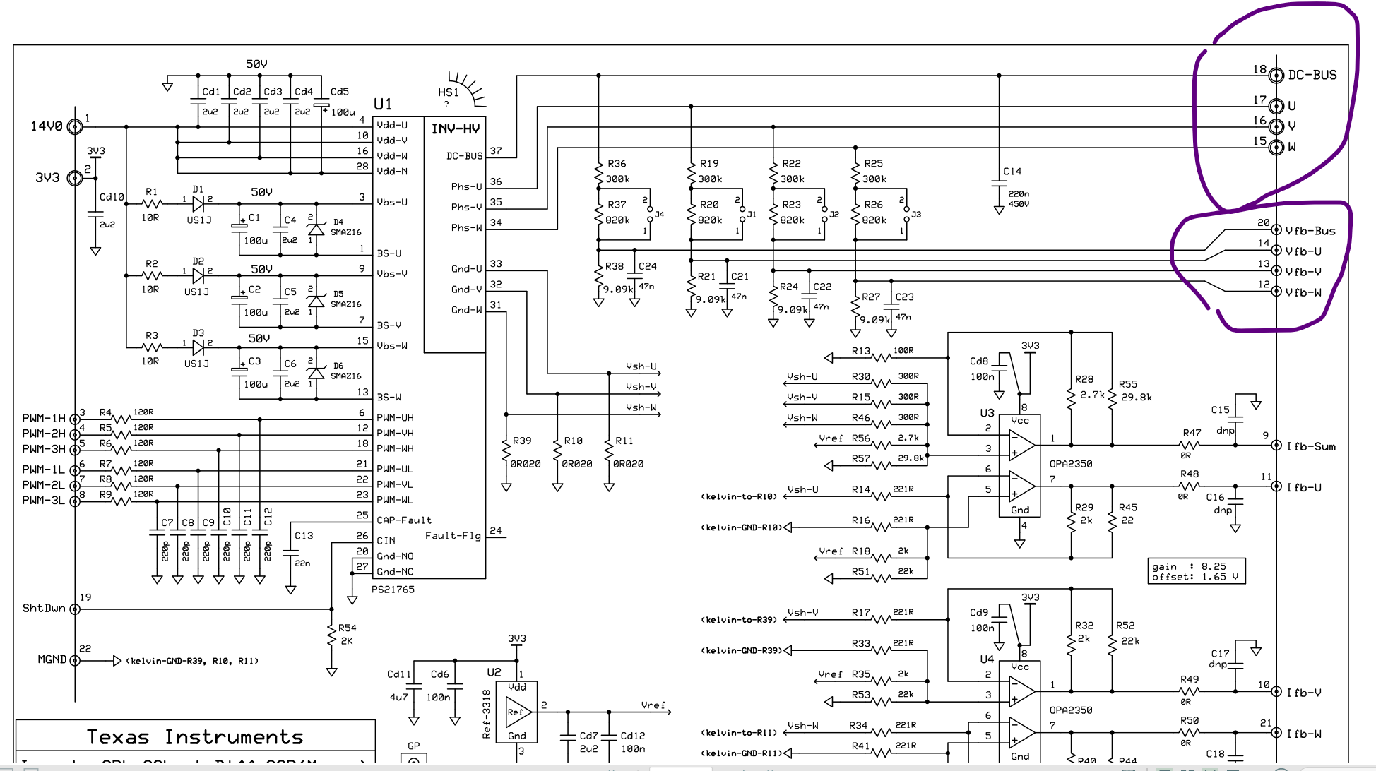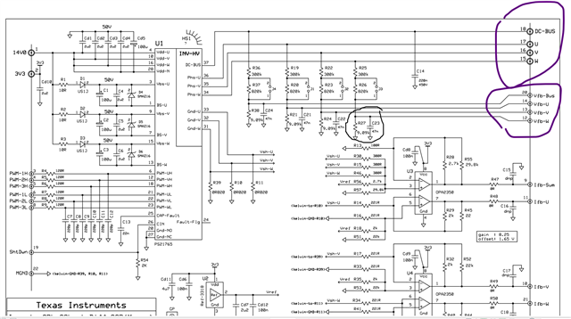 请问在TMDSHVMTRPFCKIT原理图中 Vfb-u Vfb-v Vfb-w 这三个分压后的电压是用来转化成ADC能测的相电压吗?他这里用了硬件LPF了吧,相电压测量在实际程序中需要相位幅值补偿吧?我没看到哪里补偿