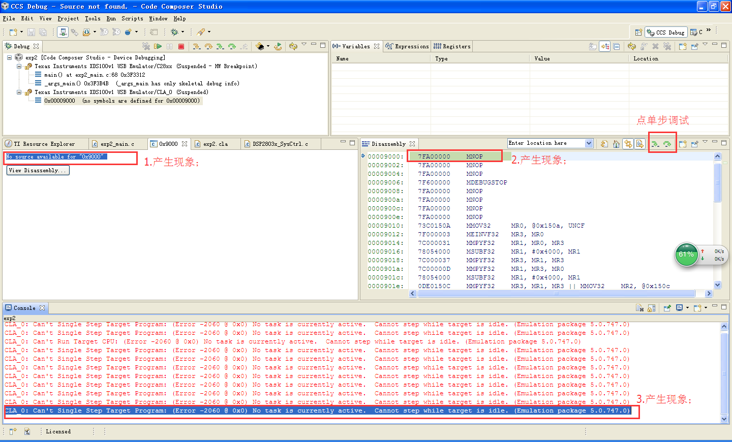 我用CCS5.5调试CLA加速器时,任务8编写一些变量的初始化,当启动运行后,停止在调试停止的位置,然后可以单步运行,一直到MSTOP指令,然后再单步运行的时候就一直在MSTOP这条指令这里。而我用CCS3.3调试相同的代码,运行到MSTOP之后,然后单步运行,就可以到自己设置启动的任务1,而且可以这样一直不断的循环运行,不会遇到MSTOP指令后不能在运行的情况,不知道这是什么原因,请大牛们支支招!