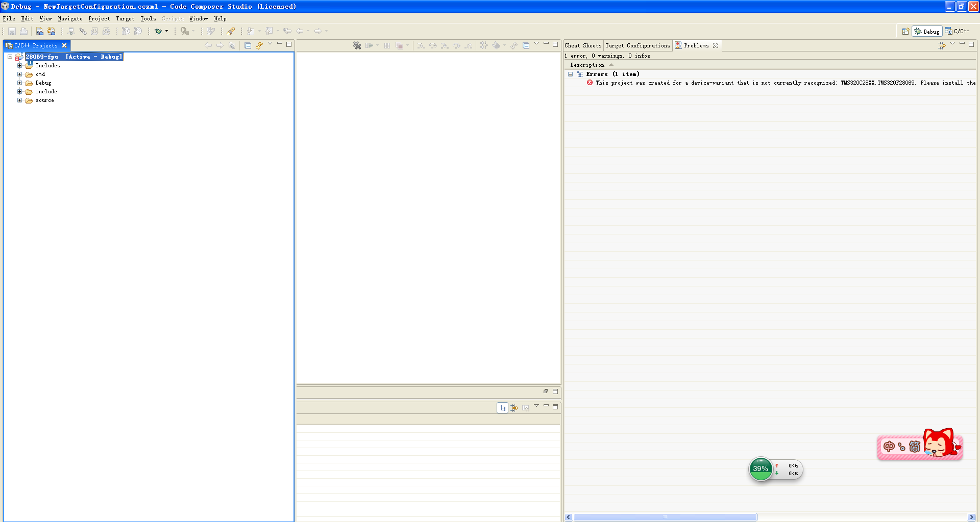 Problems窗口中是有一个Error的,不过这个Error不是具体.c或.h中的代码的错误,而是工程的设置或其他的错误