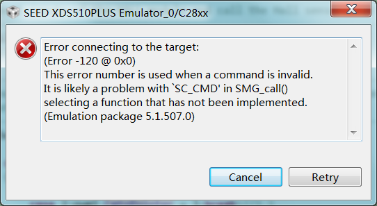 使用seed-xds510 plus 仿真器连接不上F28035和F28069这些芯片,报如下错误,不知道是为什么,是不支持吗