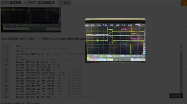 用28335的ADC进行差分采样时遇到一个问题:我用ADC的A0和B0同时采两路信号如下图的黄色波形和紫色波形