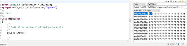 应用层记录版本号,供更新层调用,使用如下方式放入cmd定义好的90002地址段