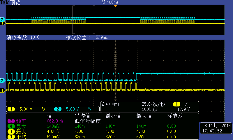 程序开通1s PWM,再关断1s PWM,再开通,再关断,循环进行,在关断前将强制将A、B输入均拉低,偶尔会出现一路(A或B),拉不低情况,代码如下: