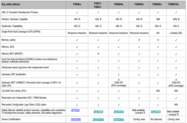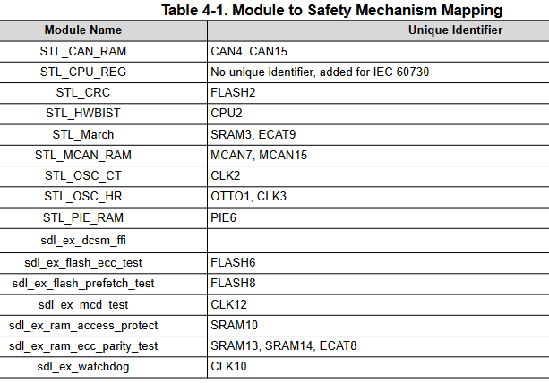 2、在Automotive Functional Safety for C2000 Real-Time Microcontrollers (Rev. B)文档中也有说明当前主流的C2000器件具备的功能安全特性,该表中标注的安全特性应如何在SDL中进行对应?