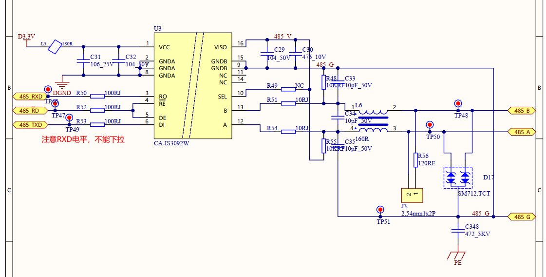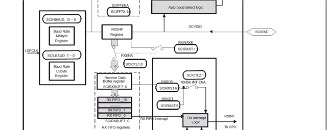 观察上图波形,黄色波形表示收到数据后翻转电平,蓝色是485_RD(485收发切换)信号,接收状态拉低,需要发送数据时拉高,可以看到发送数据时绿色波形(485_RXD)被拉低,如果不关闭SCI接收使能(RXENA),那么SCI将接收到发送时RX被拉低的这段数据,并导致RXERROR和FE,所以我在代码里发送时先关闭接收RXENA,发送完后开接收使能,但实测发现,DSP仍然收到了关闭接收使能的这个数据,请问这是为什么 ?