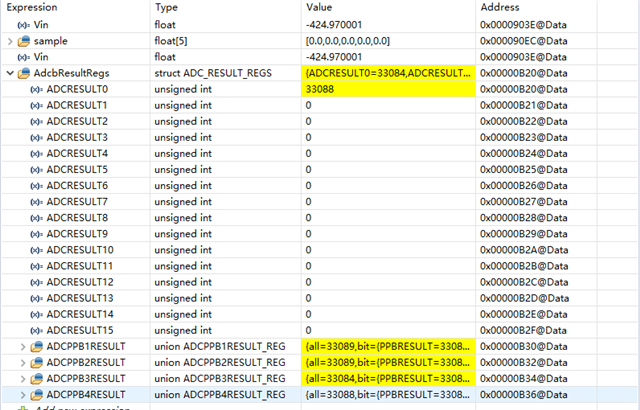 使用CCS10.2.0软件,在观测窗口只能看到内部寄存器如:AdcbresultREGs数值的变化,自己定义的变量均不变(continous refresh已打开)
