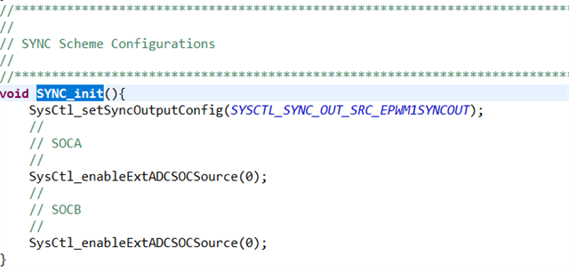 EPWM EX1 同步方案配置时,此处为何调用两次SysCtl_enableExtADCSOCSource对不同SOC进行操作,看了一下SOCA和SOCB在同一寄存器不同的位,调用两次是什么特殊涵义吗?