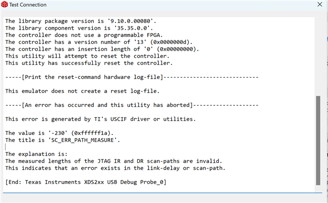 问题是这样的。0025的板子确认是好的,因为用原来的XDS100 是可以烧录的。芯片型号改成035 测试就可以通过,一旦选择0025(也试过0049)测试就通不了。
