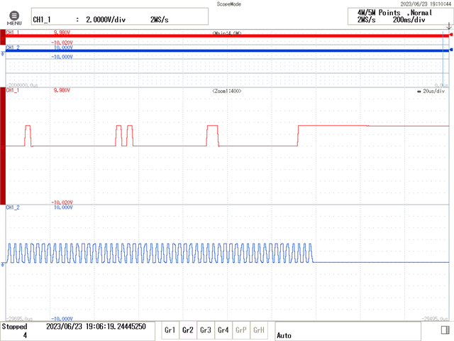Hi,我在调试SPI的时候遇到了一个问题,如图,当我spi发送的最后一位是1时,spi结束后MOSI引脚会一直保持高电平。我该如何配置才能让我的spi在空闲时MOSI引脚保持低电平呢?