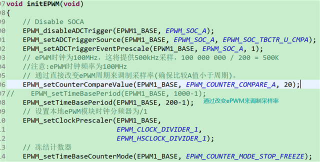This example only uses 1 ADC, which will have some delay because it's doing 1 conversion and then reading that result. The best way to try and achieve a higher sampling rate is using many SOCs (all if possible). You can trigger the first SOC however you want and then have each EOC trigger the next SOC so that you are getting continuous conversions. If you are having the ePWM trigger each conversion on 1 SOC, the throughput of the ADC will most likely be lower than the maximum possible.