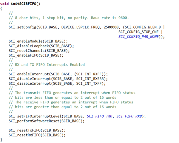 使用sci模块 实现对绝对值编码器的控制 多摩川编码器要的波特率2.5mbps,设置sci2.5mbps时,发送数据为0x02,串口调试助手接收出现错码0xc0,并且调试助手向dsp发送数据也错码,当设置为3mbps时,收发数据都是正常的。下面图片分别是设置sci为2.5mbps,3mbps,以及sci设置波特率配置代码。