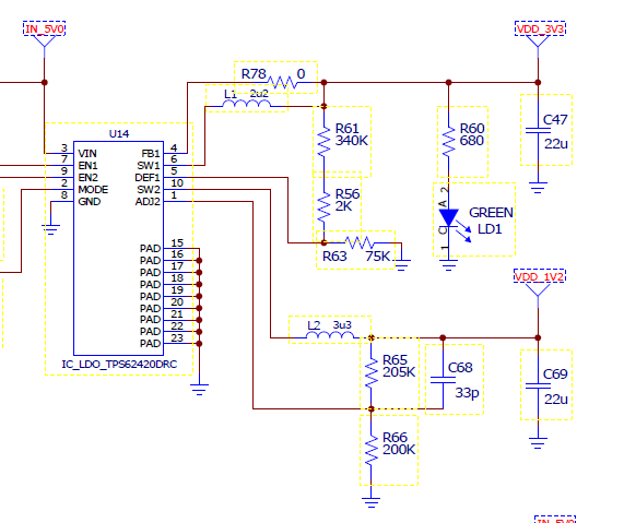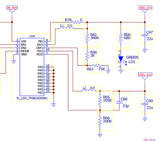 现在正看TIcontrolsuite里的F28377D的原理图,使用如下TPS62420供电,