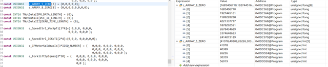 通过const声明了一个数组之后,DSP仿真发现该数据值是乱码。查看hex文件,发现生成的hex文件也是不正确的。请问是哪里存在问题?