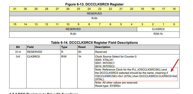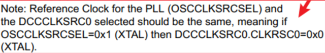 对于图片中这段话的理解:DCCCLKSRC0我应该选择0000(XTAL/X1),DCCCLKSRC1应该选择0110(SYSCLK),可是我的SYSCLK不就是经过XTAL倍频来的吗,这不是相当于自己和自己比较吗?如果我讲DCCCLKSRC0时钟源改为INTOSC1,如果监测的结果是异常,那我要怎么取判断是INTOSC1频率有问题还是SYSCLK的频率有问题?
