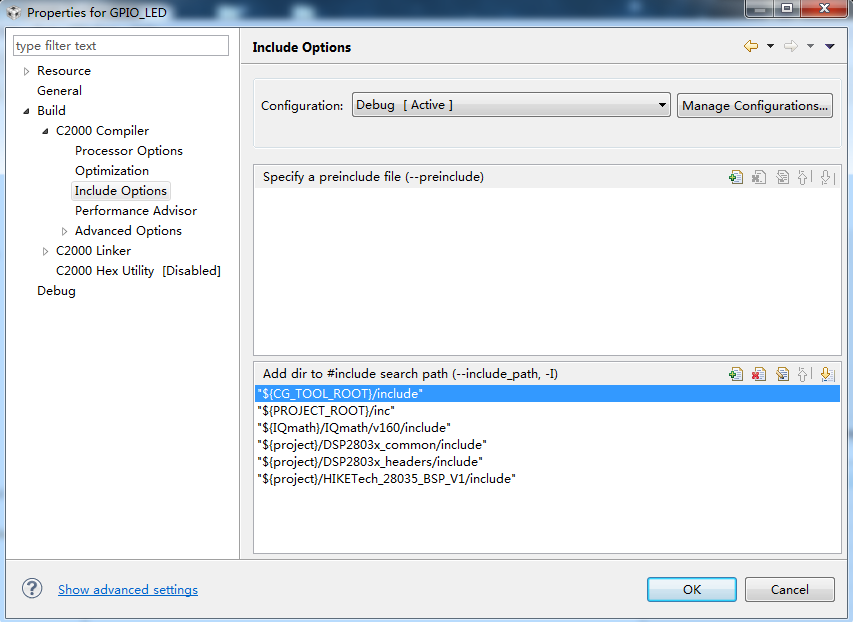 这两个是递进的关系,include是设置路径,如果你想再具体在路径中指定想要include的文件的名字,据需要在preinclude中设置。