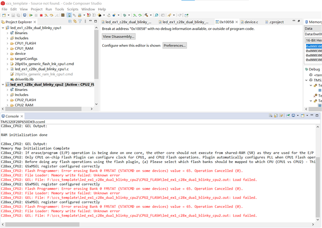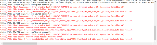 C28xx_CPU2: GEL: File: F:\ccs_template\led_ex1_c28x_dual_blinky_cpu2\CPU2_FLASH\led_ex1_c28x_dual_blinky_cpu2.out: Load failed.