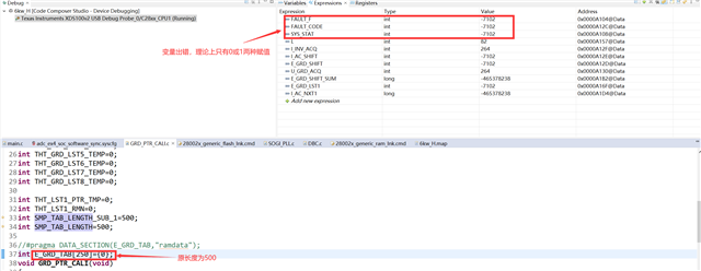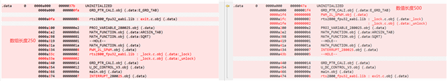 我将自定义的一个数组长度由500更改为250,在线仿真发现程序内的变量出错,比如A的初始值是0,后续程序中仅仅对其赋值0或者1,但在线仿真中发现A=-7102;将数值长度改回500后,在线仿真发现A的数值恢复正常