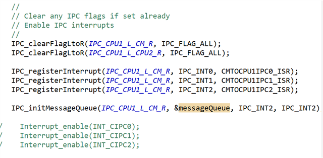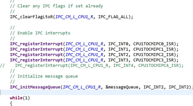 1、我在自建工程代码中在CPU1和CM之间使用IPC消息队列进行通信时遇到一些问题,就是CM通过消息队列发送数据给CPU1时,CPU1能进入IPC中断,但CPU1的GetWriteIndex没有更新