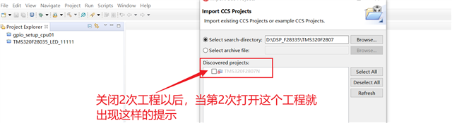 如下图所示,新建的CCS工程,关闭2次工程后,当第2次再打开该工程,就出现提示不能打开该工程的问题,请问这是什么原因造成的?