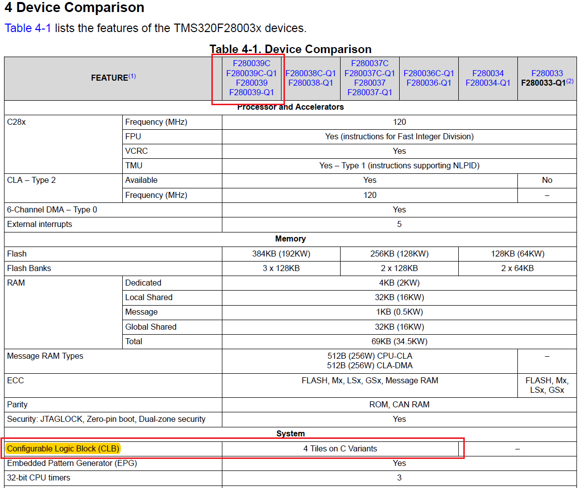 2. 若TMS320F280039微控制器含有CLB模块,其与TMS320F280039C在CLB模块上有何区别?
