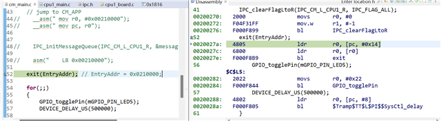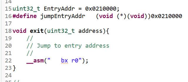 2、在CPU1不同的flash扇区烧写了两个工程的代码,如果想要从这个工程的main函数跳转到另一个工程main需要哪些汇编指令?