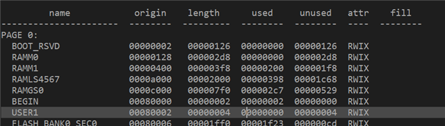 USER1 : origin = 0x00081FF2, length = 0x00000004