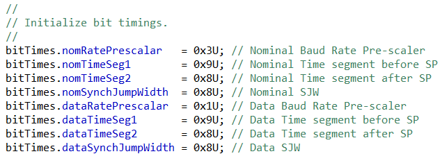 程序中CAN FD配置如下: