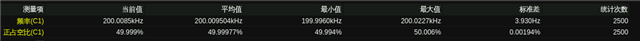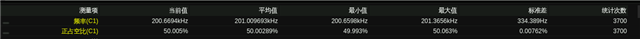 1.设定201kHz,TBPRD=298,TBPRDHR=0x8200;可以看到示波器测量到的频率在200.66kHz~201.36kHz之间波动,平均值是201kHz