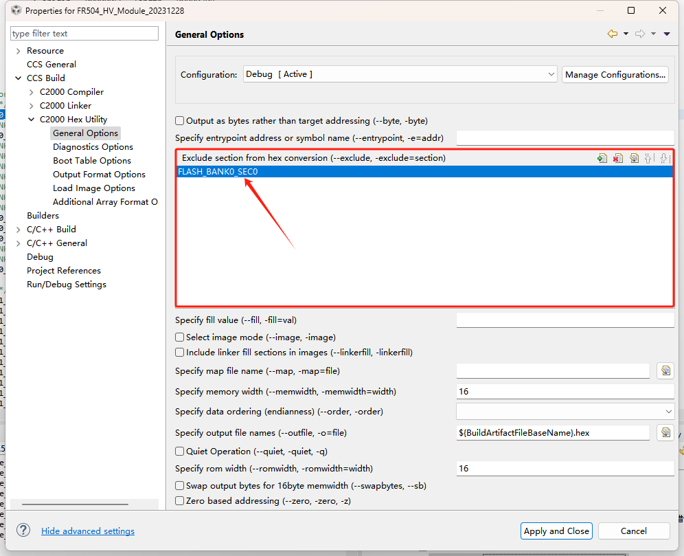 我想在生成hex时,只生成某些地址,或者说排除某些地址段,是从图中位置设置吗?如果是这里,那么其中应该填写什么,扇区名称?但是我填了之后并没有作用