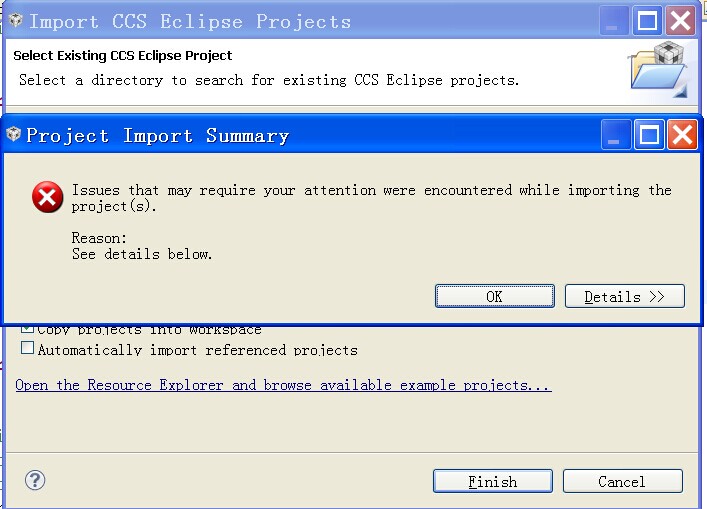 • 你的是不是已经导入过这个工程到workspace中?因为你的 copy projects into workspace是勾选了,那上一次导入的时候会自动拷贝项目到workspace中,就算在CCS中删除,也会报已经导入过这个工程,需要找到你的workspace目录去去彻底删除那里的拷贝项目就好了。