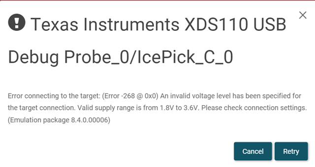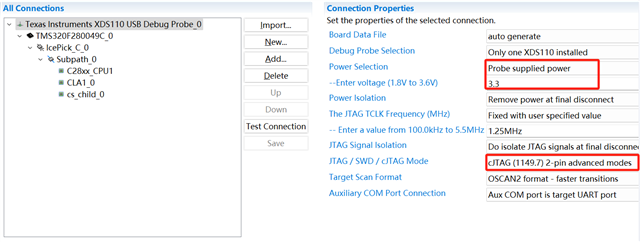 2、当我电脑和XDS110连接后,并且UniFlash 5.3.1中已经选了配置文件,在没有连接目标板的情况下,测量14pin的JTAG,5pin对8pin会有1.8~3.3的电压吗?