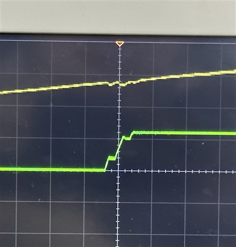 还有个VDD电源方面的问题,绿色是VDD外部电容上测到上升有台阶,这个是什么原因呢?芯片是内部的3.3转1.2的ldo嘛