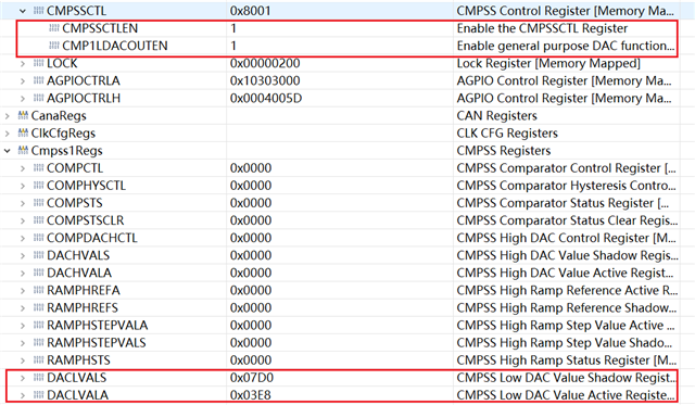 用户手册上提到CMPSS DAC输出功能的部分比较少,C2000Ware里好像没有找到官方例程相关信息。所以是不是遗漏了一些配置导致不能够输出?