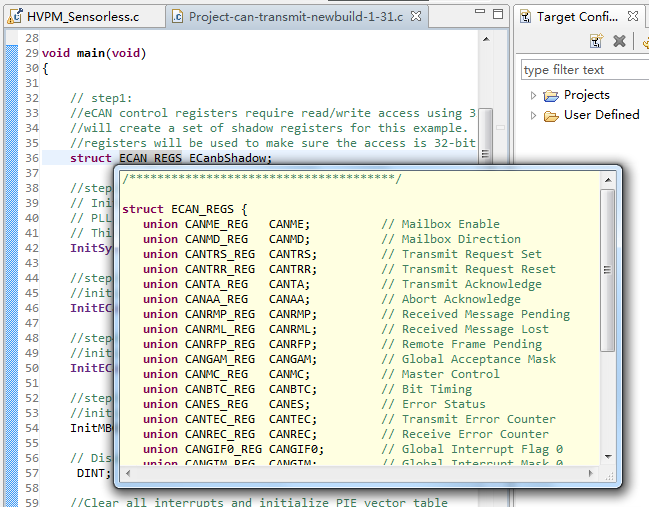 谢谢您的回答,我现在又出现一个问题:我已经添加了include,在自己写的程序中调用struct ECAN_REGS ECanbShadow,就会显示variable "ECanbShadow" was declared but never referenced,请问这是问题。
