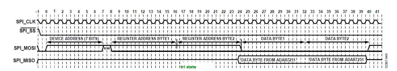 该外设要求时序如图所示,前3个byte发命令,然后回读,回读的时候,我用了dummy wite不知道问题出在哪里?我是用FIFO实现发5bytes数据的,SIMO线上用示波器看过数据,是对的,但是就是在SOMI线上看不到回读的数据,,但就是看不到SOMI线上有数据,,请帮我看看。