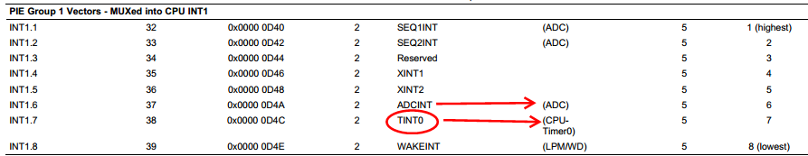 疑问1:请TI人解释一下图二中第一个箭头INT1.6- ADCINT,是怎样触发CPU timer 0计数的。